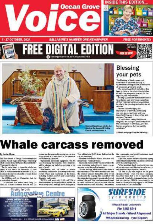 The Department of Energy, Environment and Climate Action began removing a washed up whale carcass from Thirteenth Beach yesterday (Thursday October 3).