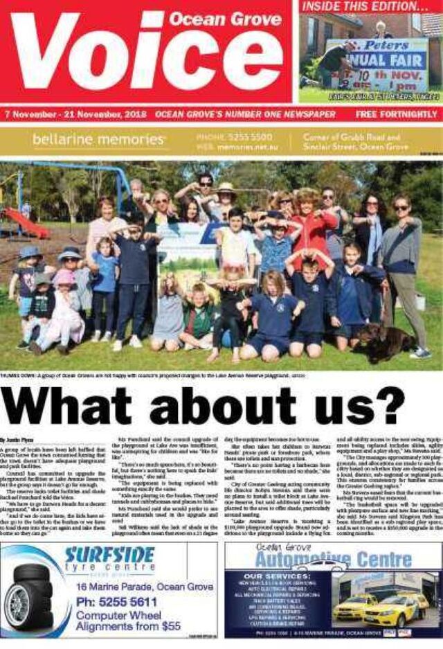 A group of locals have been left baffled that Ocean Grove the town concerned fuming that the town doesn’t have adequate playground and park facilities.