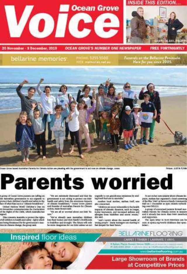 A group of Ocean Grove parents are calling on the Australian government to act urgently to protect their children’s health and safety in the face of what they say is a “climate breakdown”.