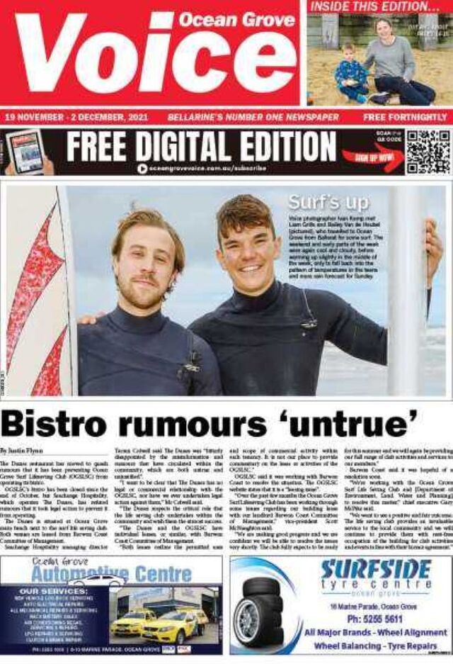 The Dunes restaurant has moved to quash rumours that it has been preventing Ocean Grove Surf Lifesaving Club (OGSLSC) from operating its bistro.