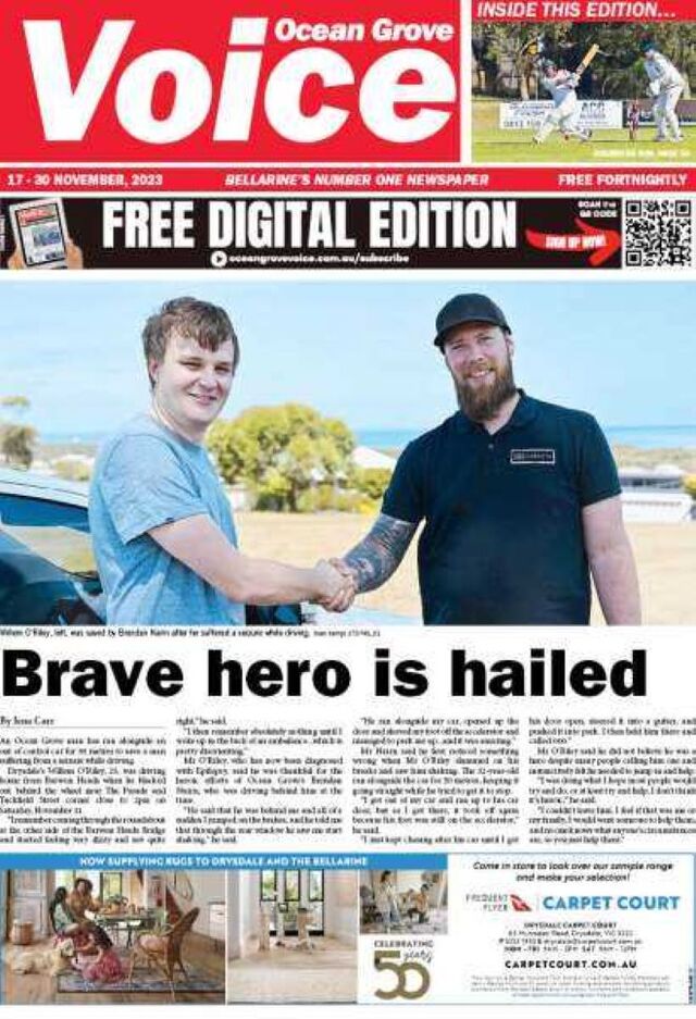 Drysdale’s Willem O’Riley, 25, was driving home from Barwon Heads when he blacked out behind the wheel near The Parade and Tuckfield Street corner close to 2pm on Saturday, November 11.